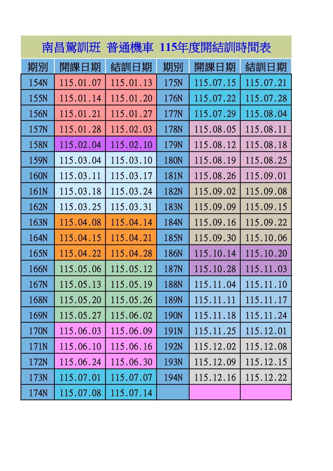 115年南昌開課日期